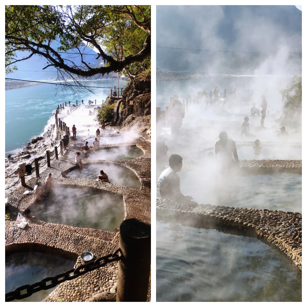 15:00-17:30登梗温泉体验:① 18 塘中选 3-4 处体验(水温 50-72℃)② 团队泡脚破冰