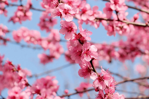 怒放的桃花如火焰如云霞把整个山坡都染成了粉色的梦境